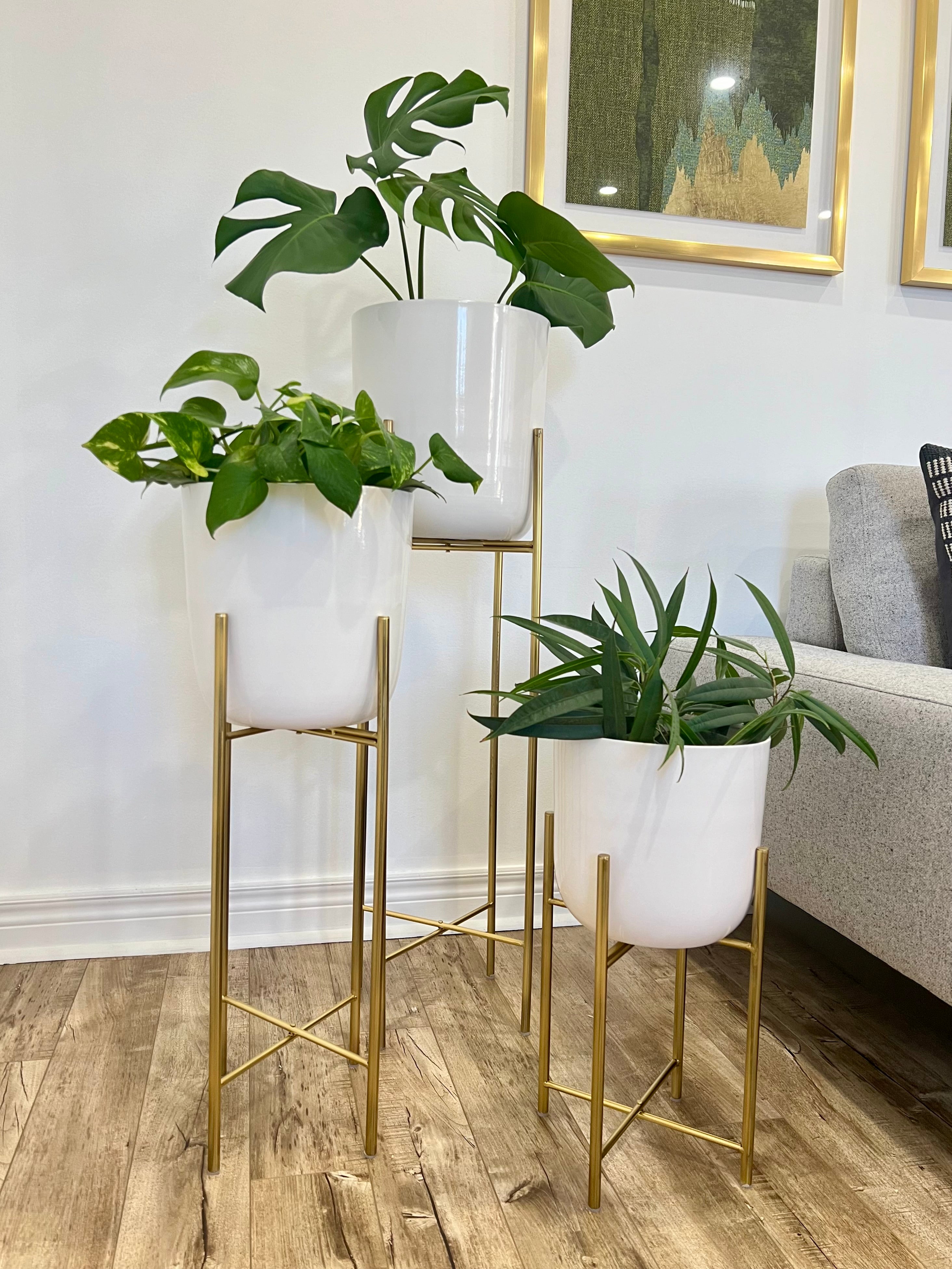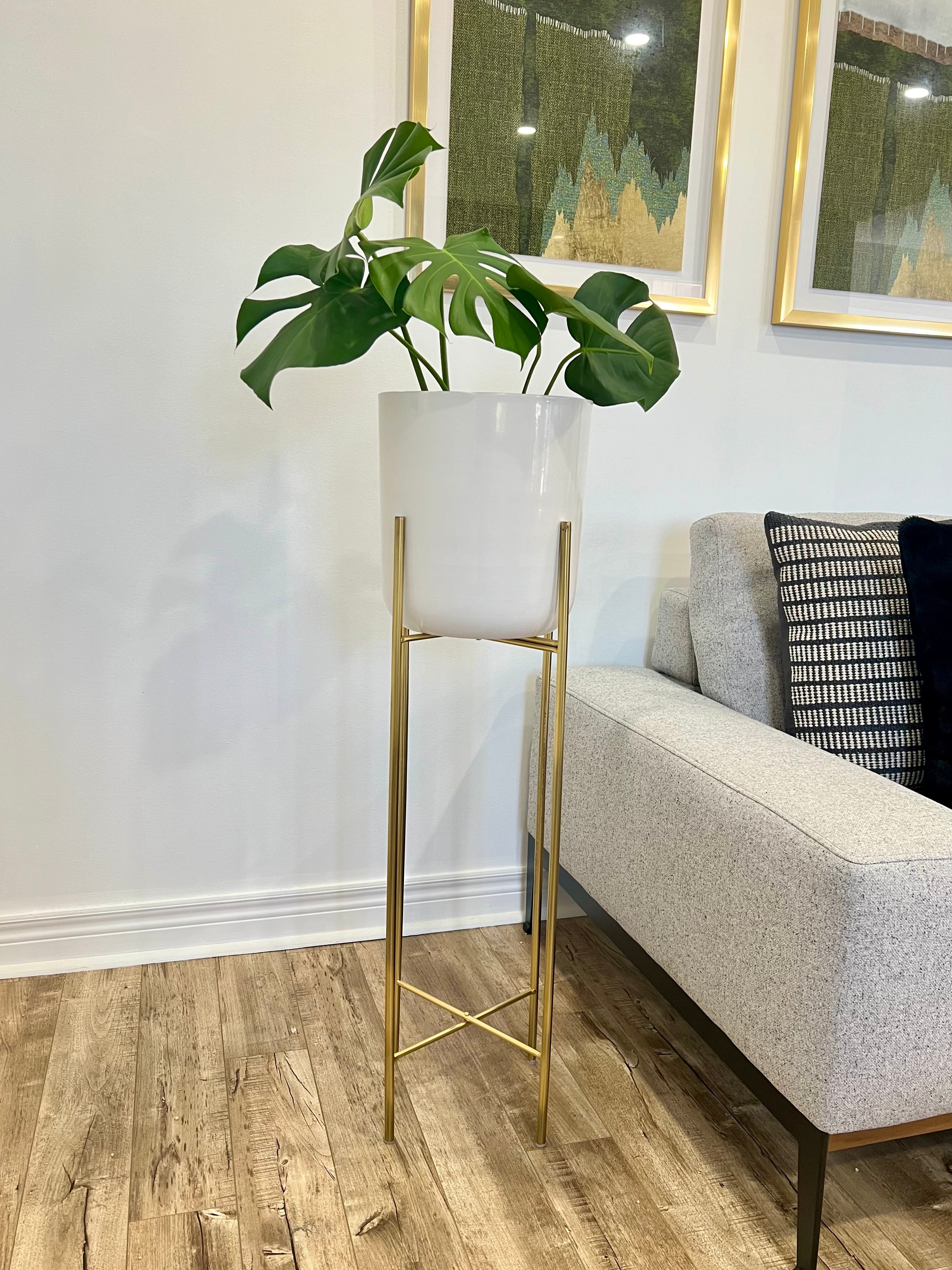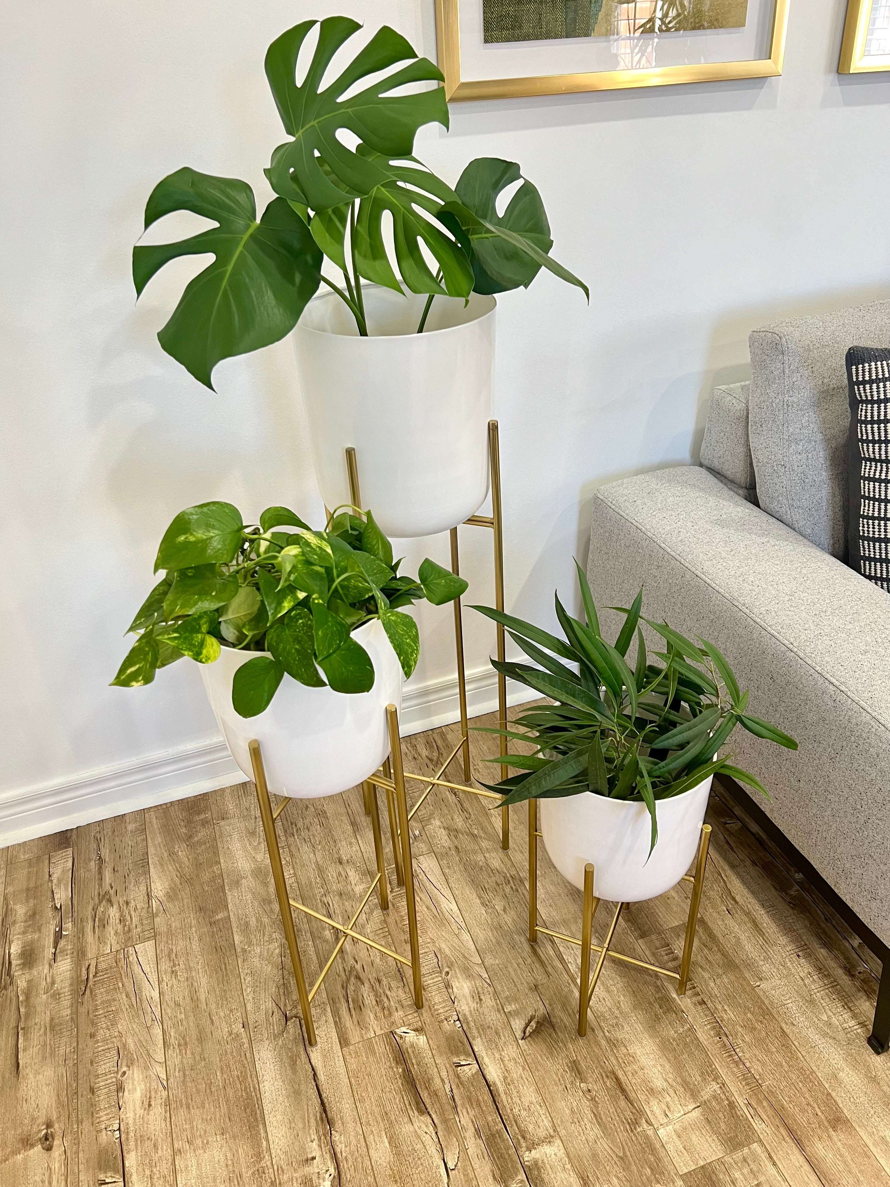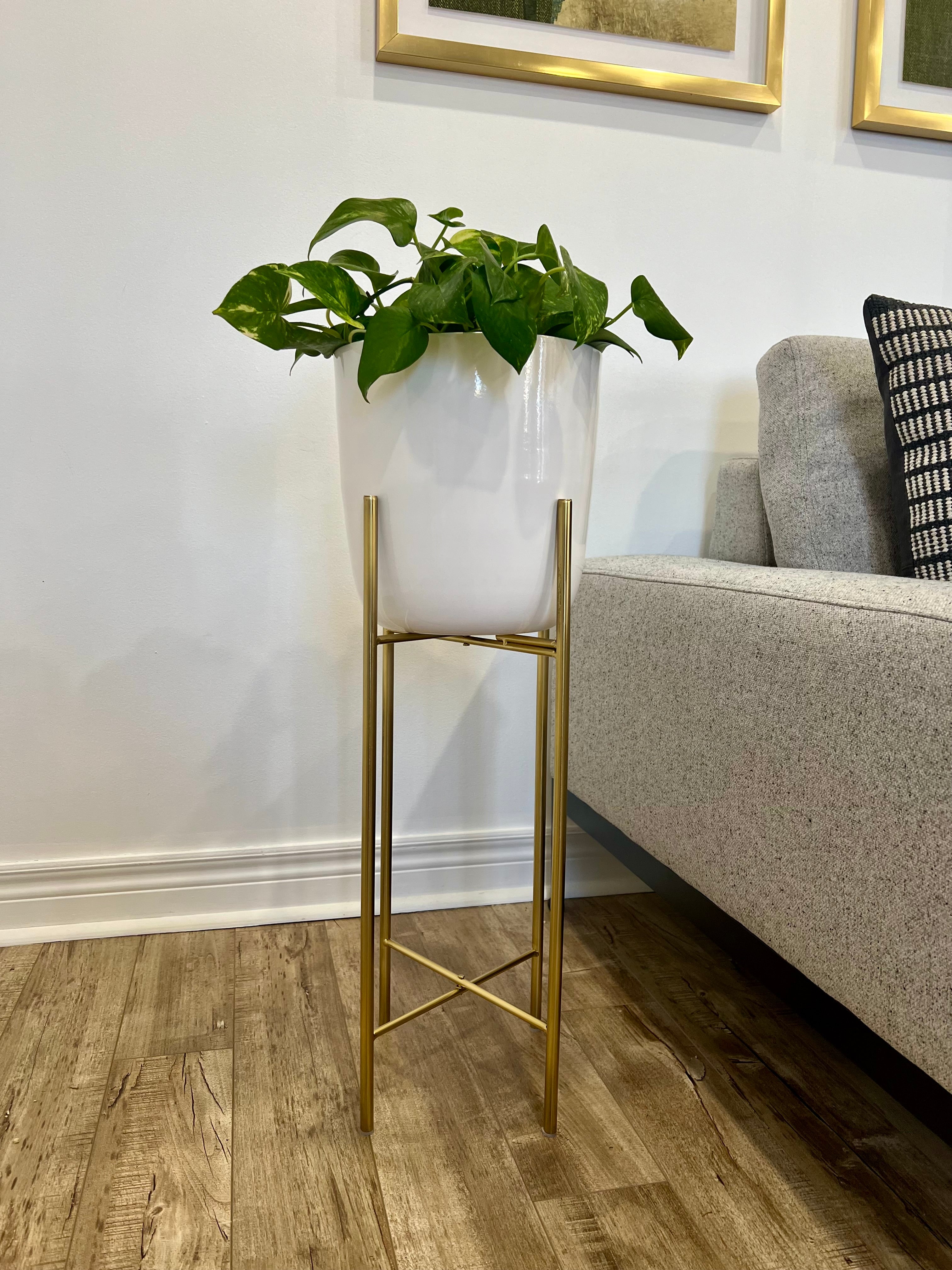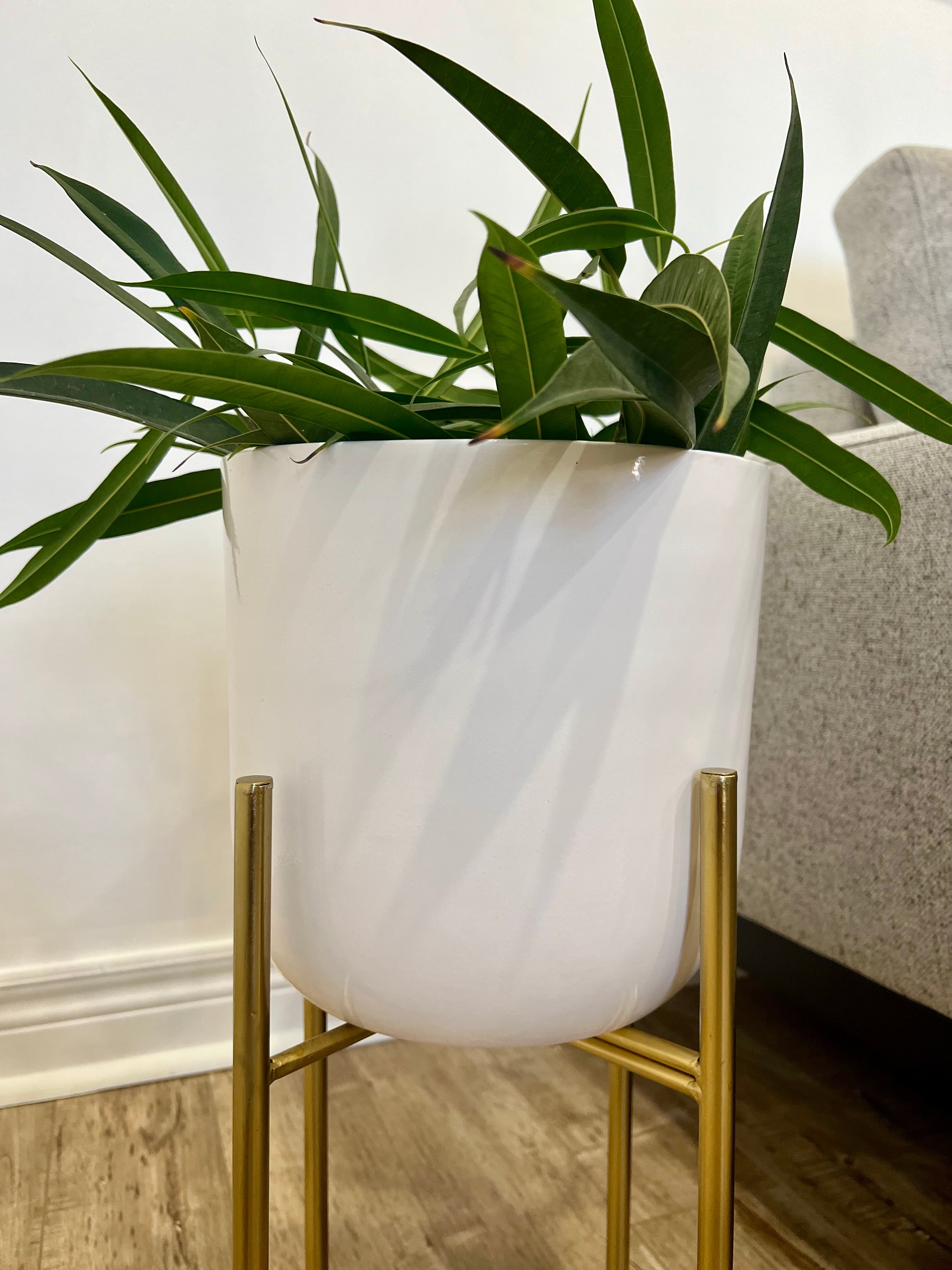 Classic White Metal Planters on Gold Legs/indoor outdoor planters/home decor/plant lover/high height luxury look/gold plated //white pot/