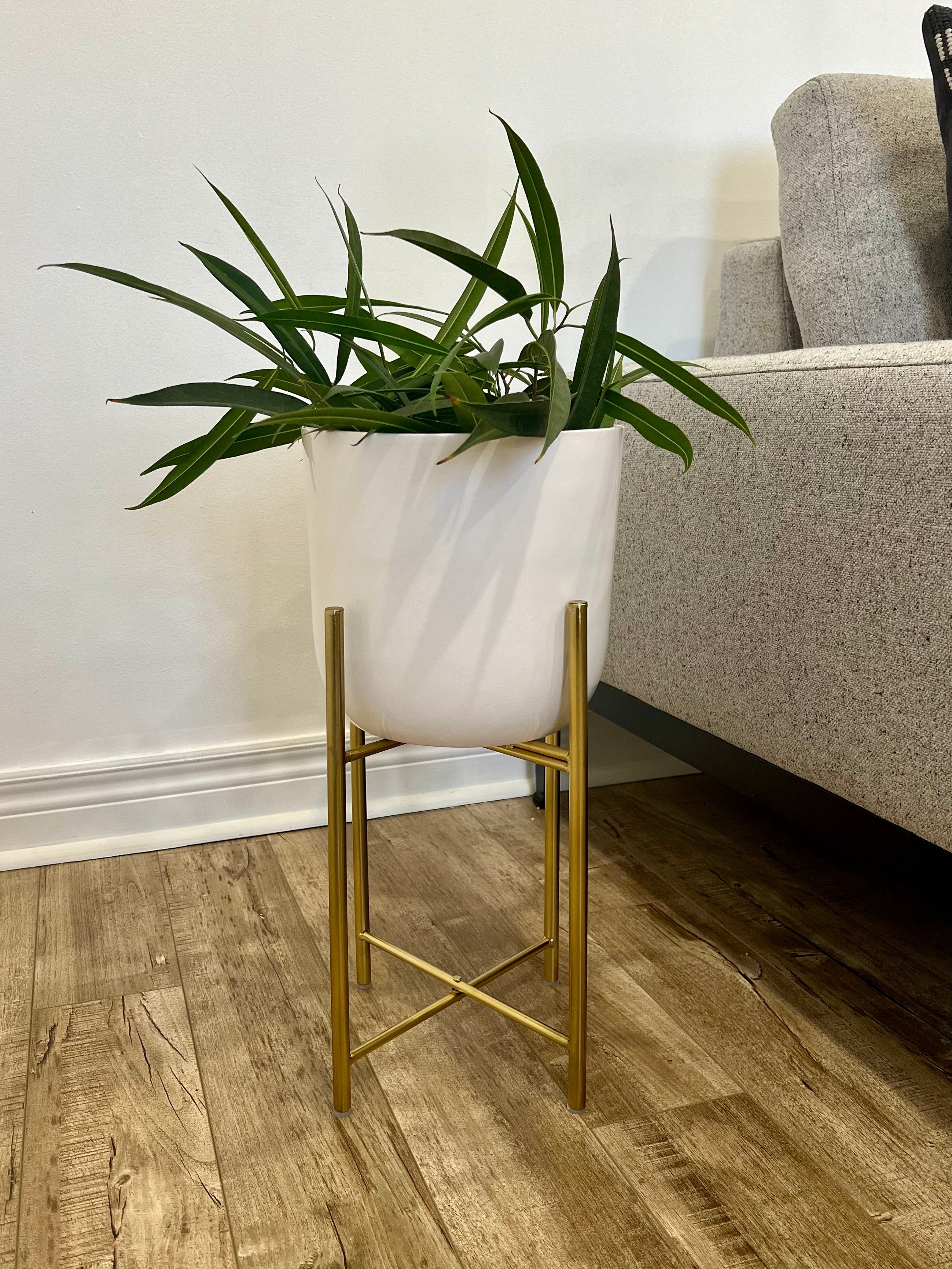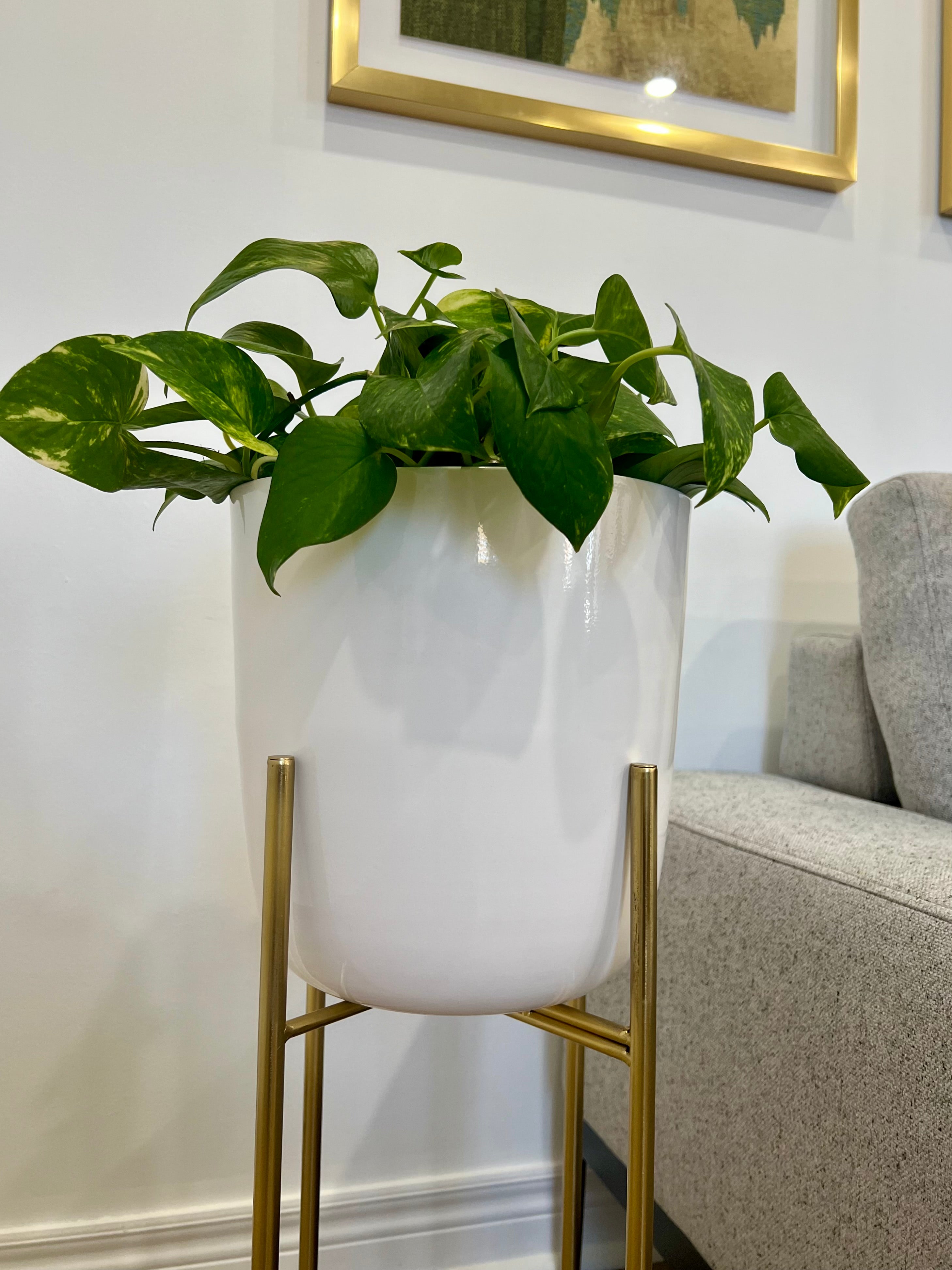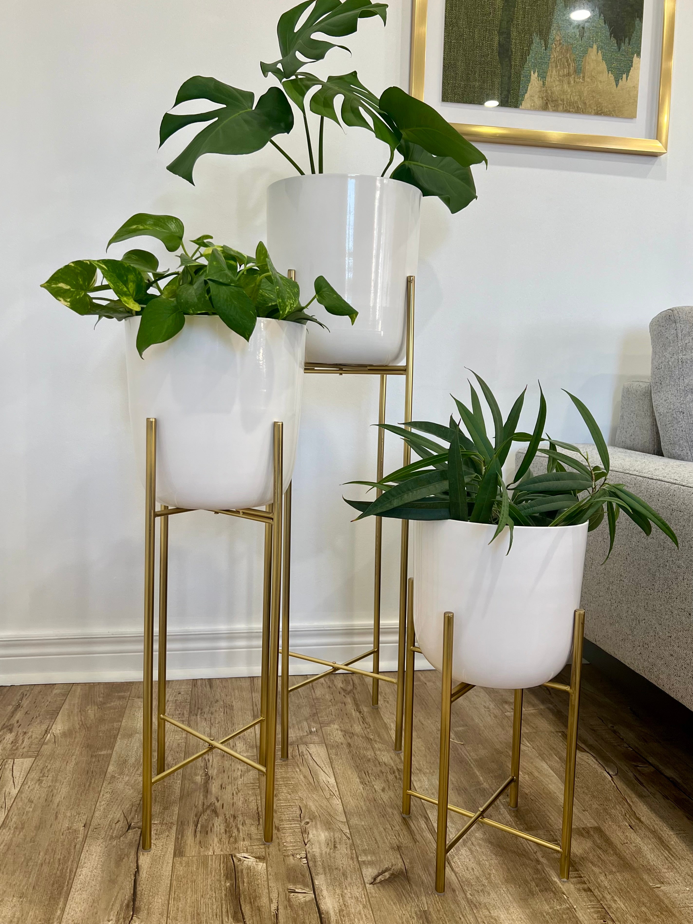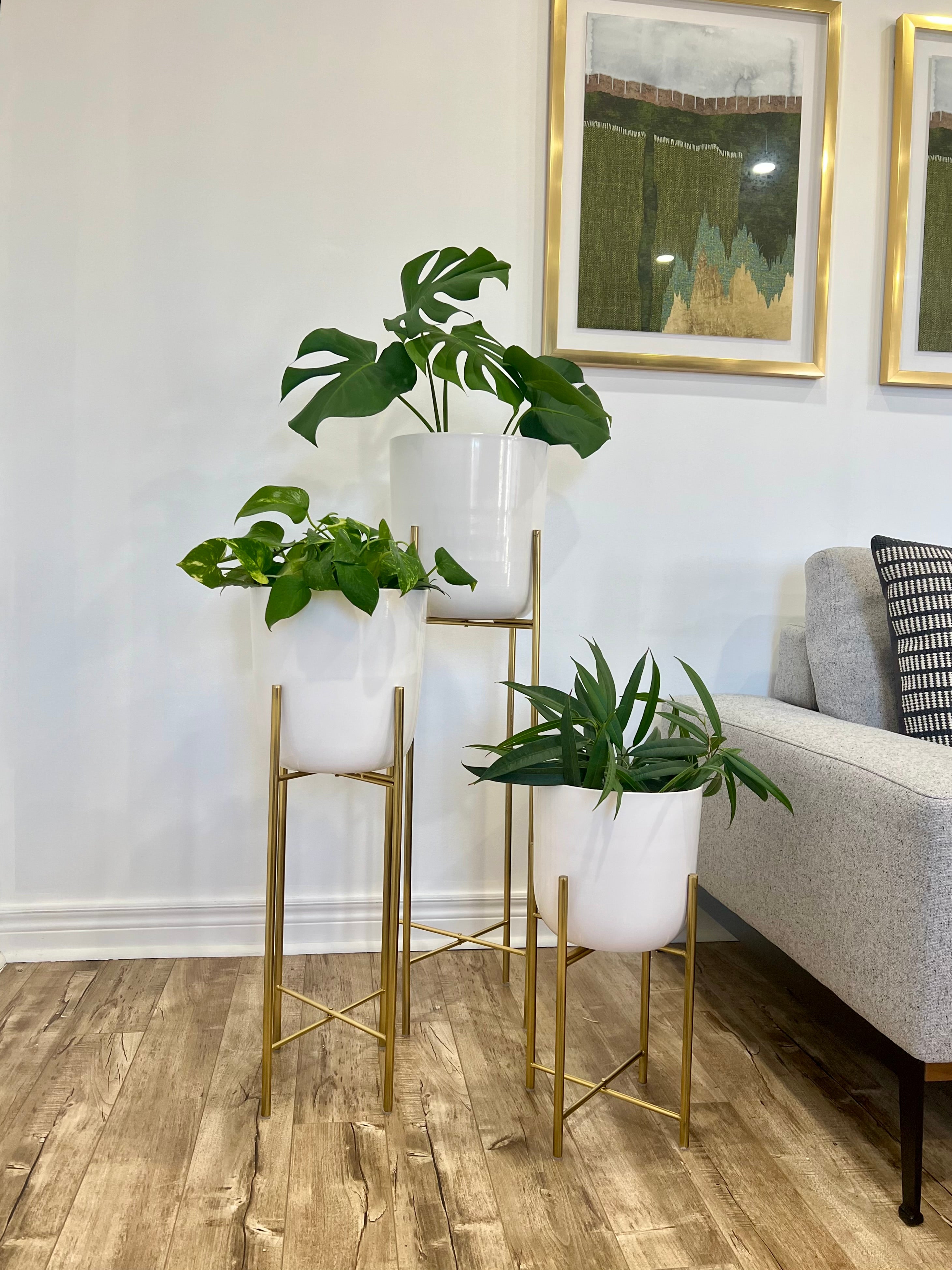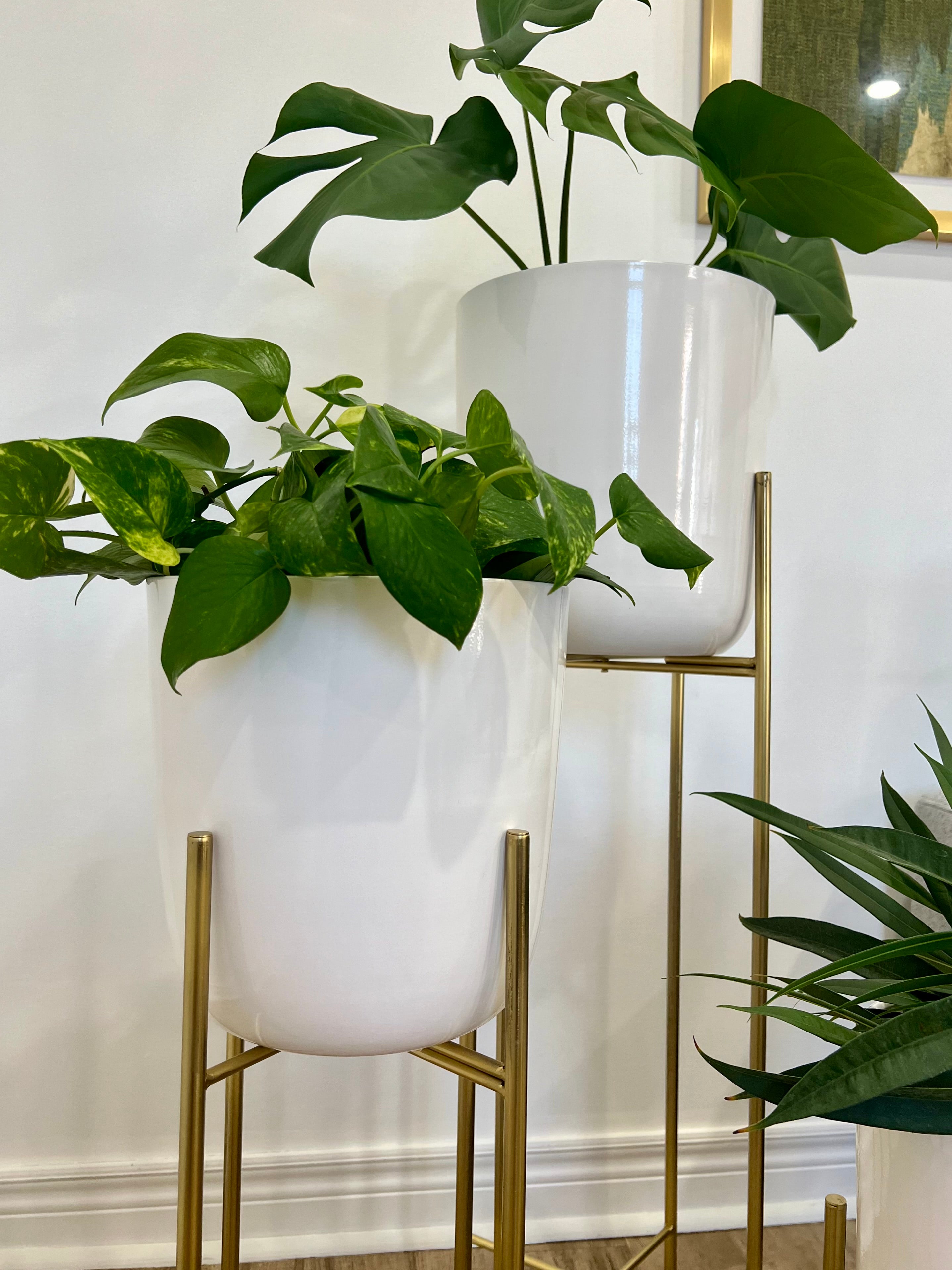 Classic White Metal Planters on Gold Legs/indoor outdoor planters/home decor/plant lover/high height luxury look/gold plated //white pot/