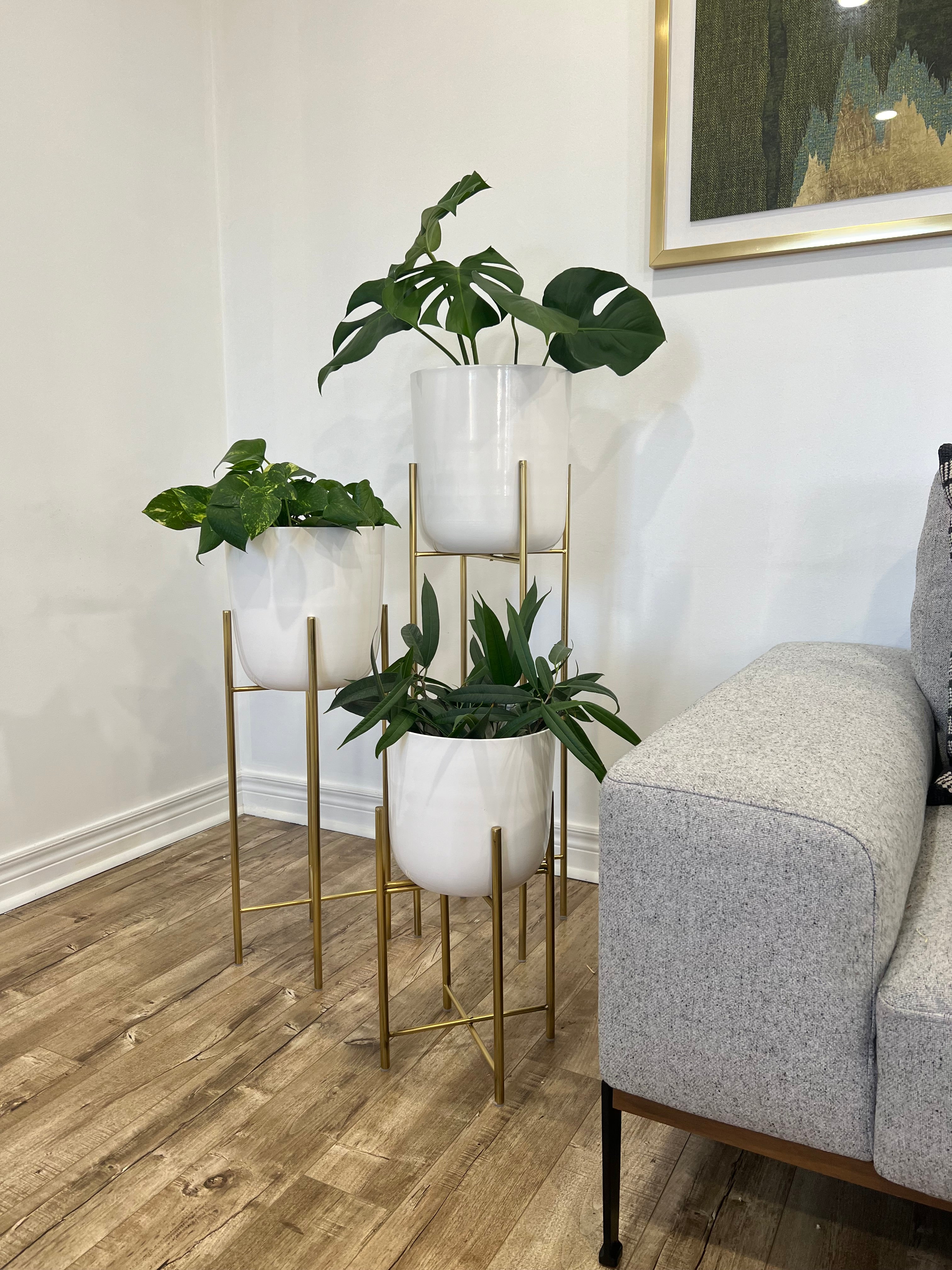 Gold, gold, and gold! A combination of luxury and modern makeup these curated pieces. Incorporate these muted gold bowls on sturdy iron legs into any space to add warmth. Made of 100% metal, they are the perfect everlasting purchase for your plants.