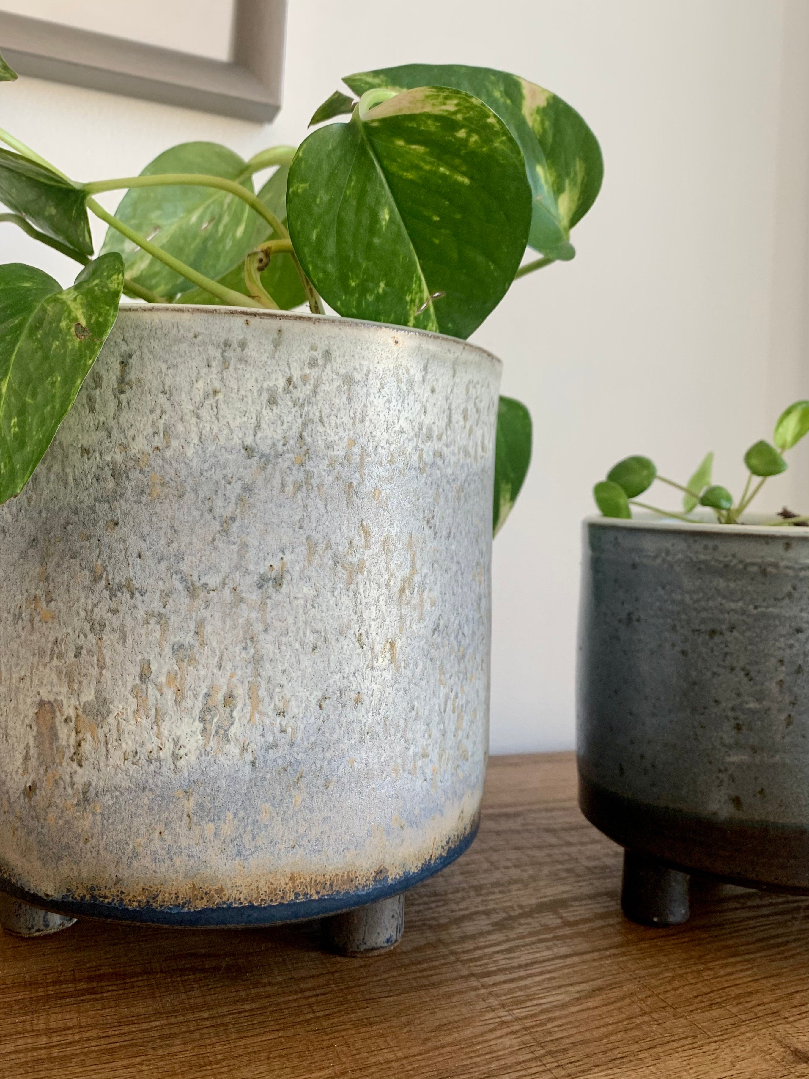 A gradience pattern of blue and grey make these pots the perfect addition to any minimalistic space.