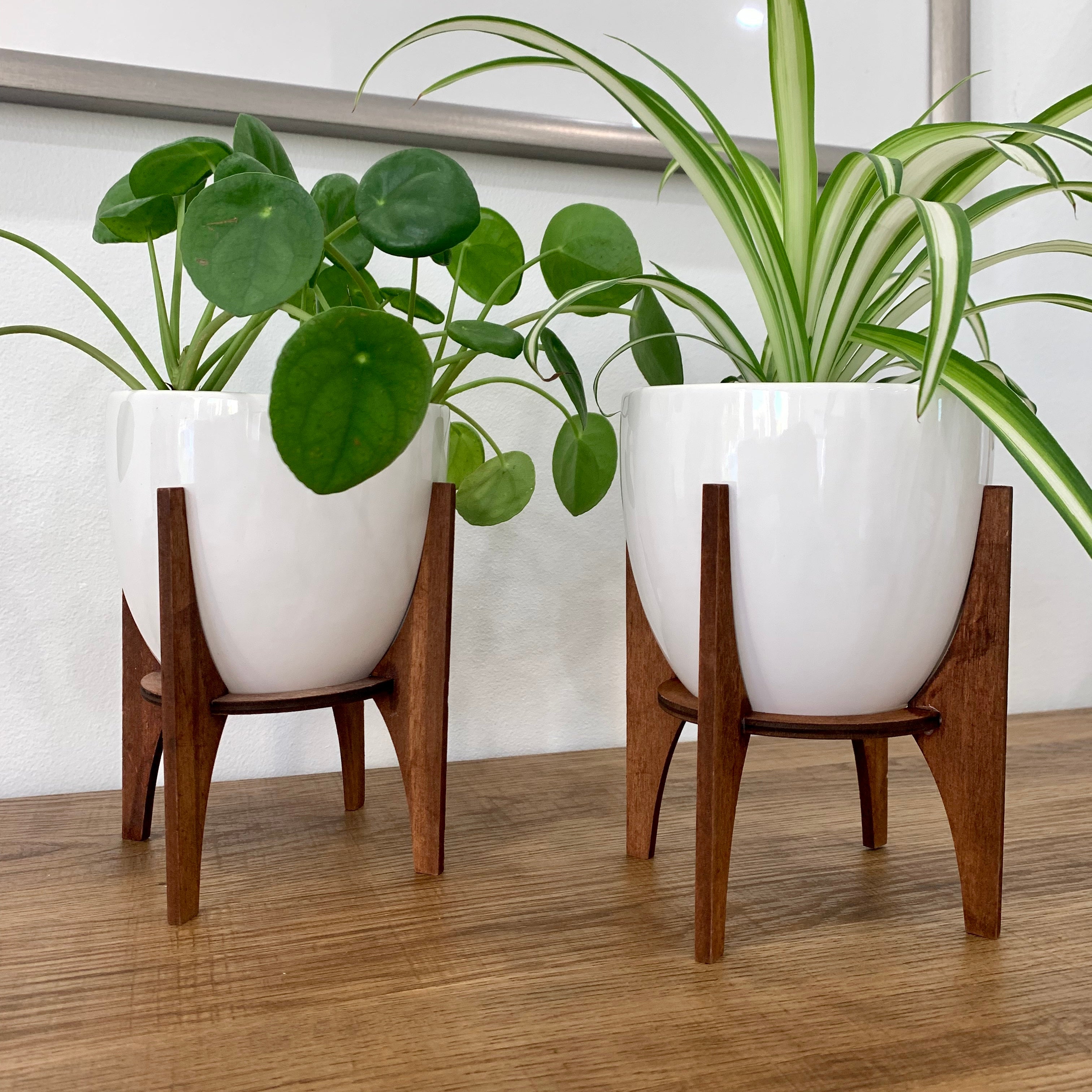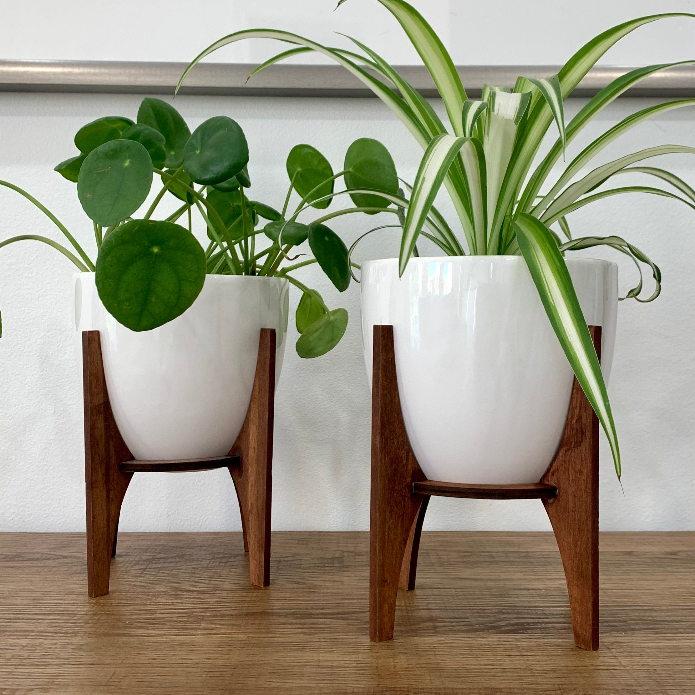 Ceramic and Canvas Wood? Sounds fresh! Just in: our famous table planters are back in stock! These minimalist ceramic planters sit on sturdy wood stands, adding a minimalist boho accent to any space.